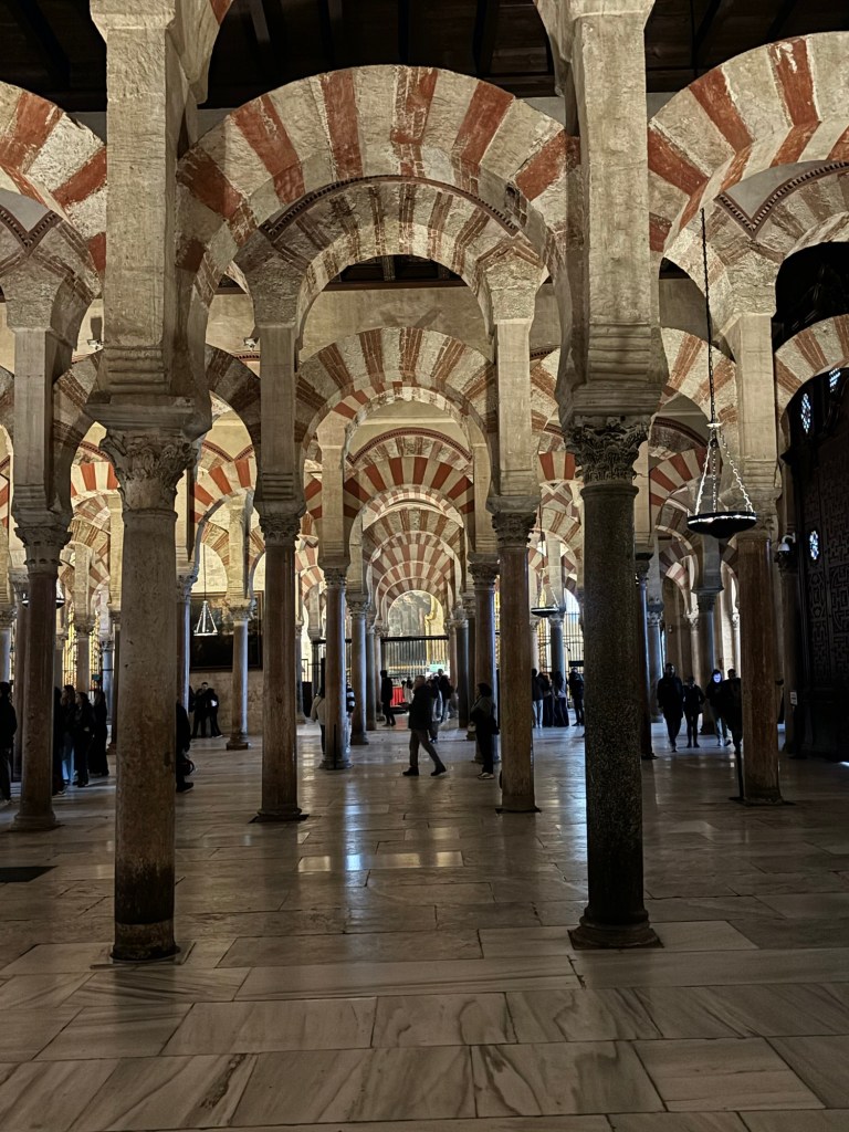 Córdoba is probably most famous for its Mezquita Catedral. Having never been in a mosque before, we were not sure what to expect – but this place was vast. Arch upon arch, in a distinctive stripe, stretch away into the distance as you wander speechless through the gloom. Tableaus, reliefs sculptures, precious works of art and other uncovered treasures have been restored or are in the process of being restored. Representing a mix of religious believes and cultures, it is all quite extraordinary.