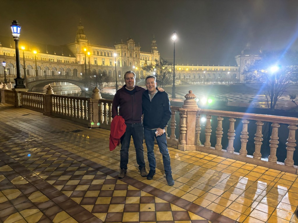 Throughout the day we added places to visit properly next time. Entry tickets for the Cathedral (which looks stunning from the outside) and to climb its Giralda tower sell out well in advance, so no chance for this weekend. And we will certainly be back to spend time in Plaza de España. On the way back from the match, we stopped in for a late night peek as the groundsmen were closing the gates. Built for an Expo in 1929, this has to be top of the must see list when we return.