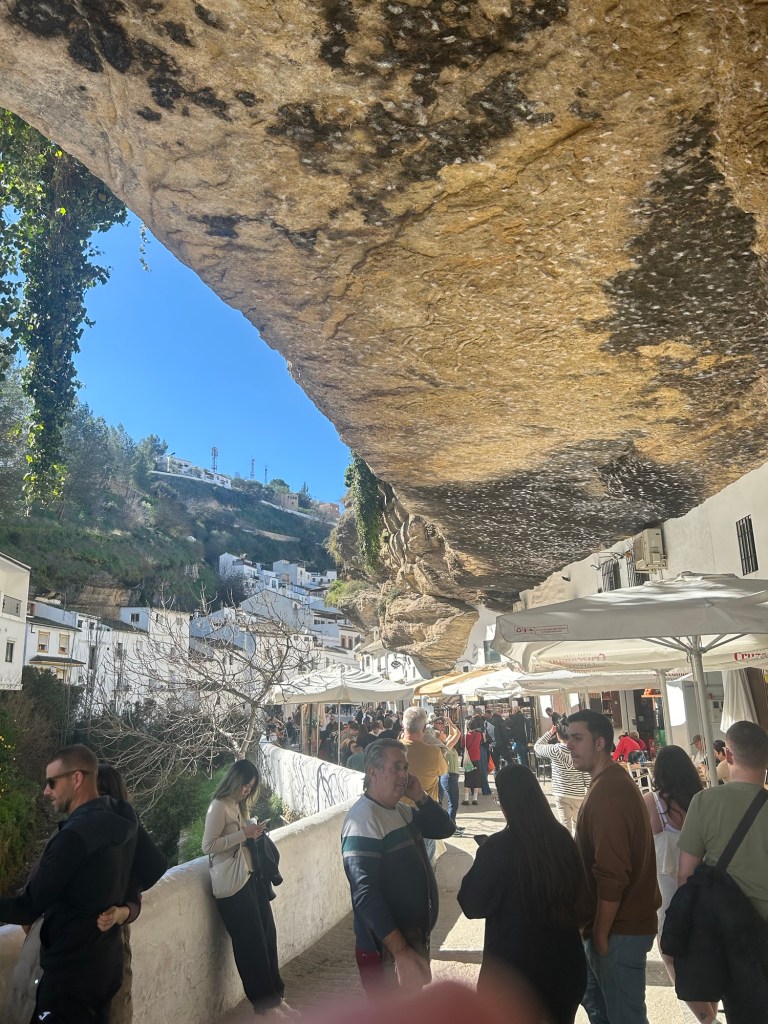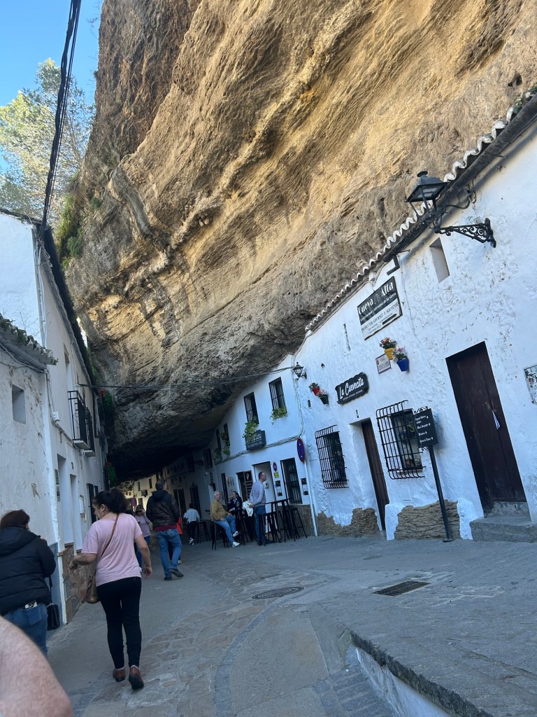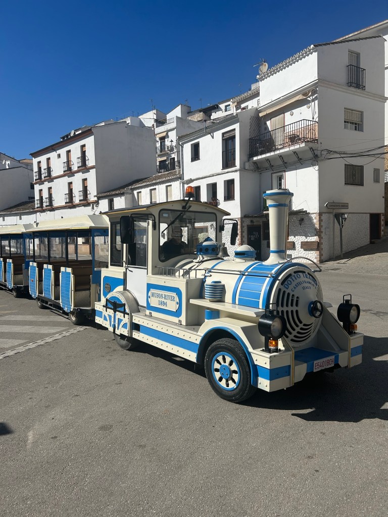 After Ronda, the tour bus whisked us thirty minutes up the road to Setenil de las Bodegas – a town of white washed houses built into the cliffs. Well, I say the bus took us there but in fact it took us close and the rest of the way in was on some rickety old noddy train which barrelled down the hill defying most other vehicles that wanted to pass!